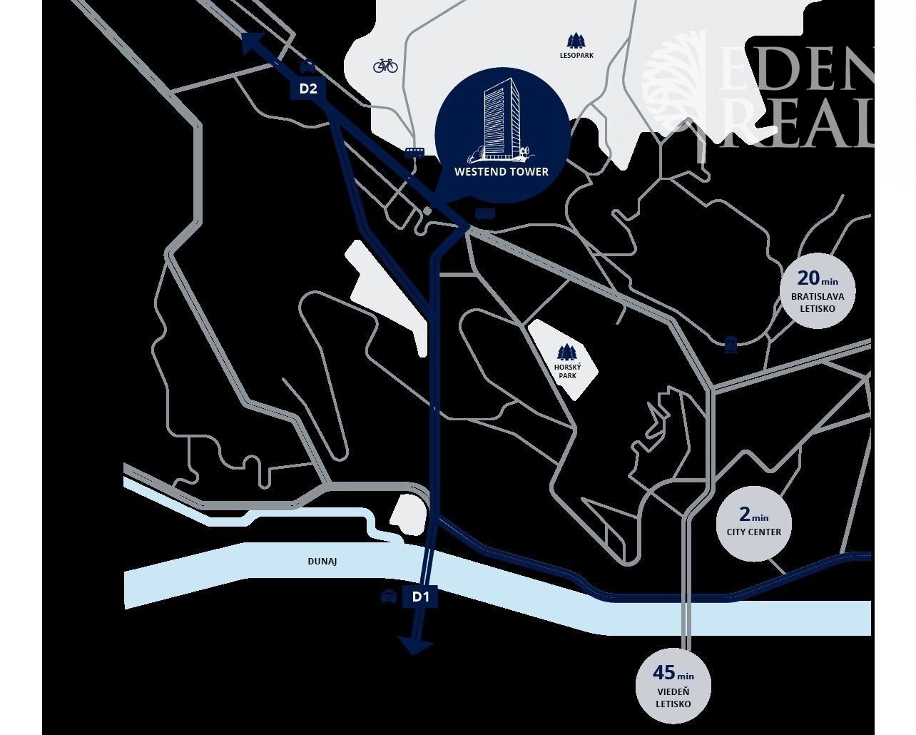 Administratívna budova WESTEND TOWER sa nachádza v západnej časti Bratislavy