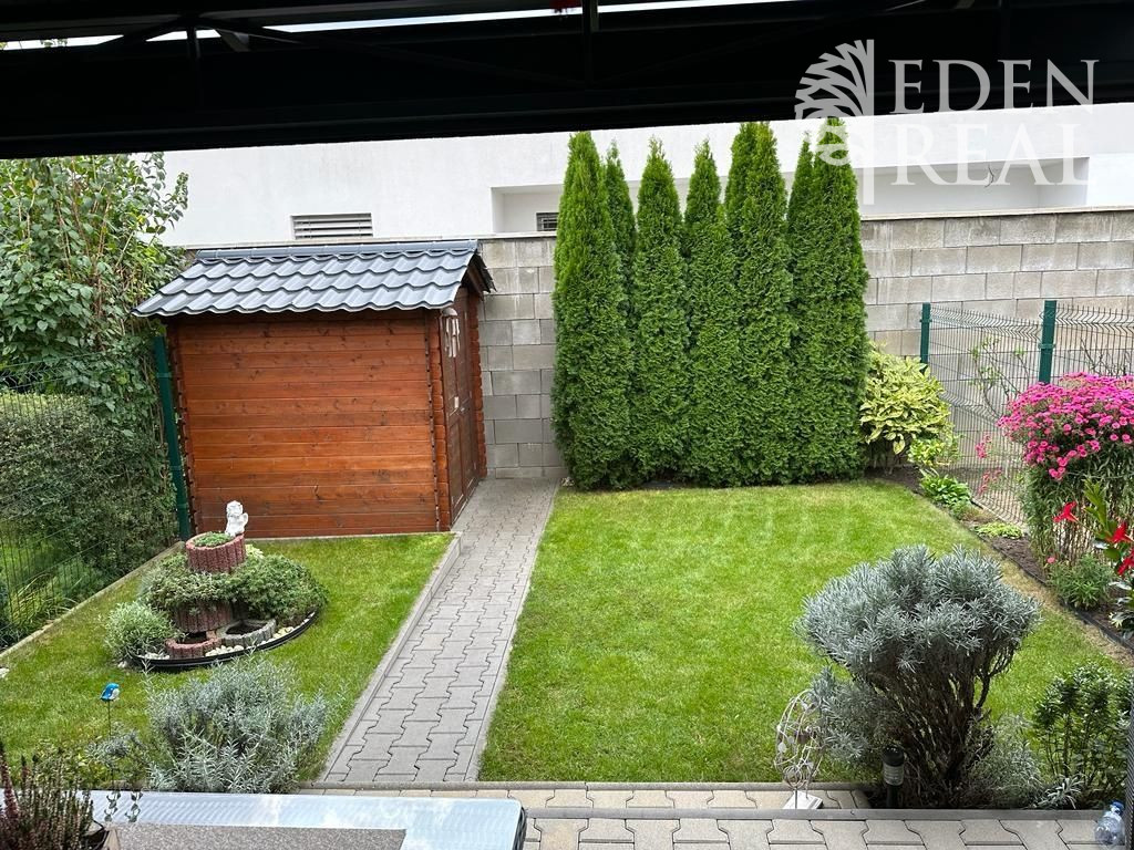 K bytu prislúcha pozemok, tvoriaci dvor so záhradou, na ktorom sa nachádza montovaný domček na náradie. Taktiež k bytu prislúcha predzáhradka s možnosťou parkovania pre 2 motorové vozidlá.