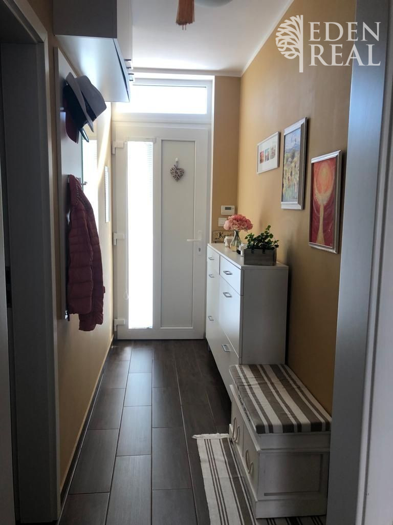Byt pozostáva z predsiene, obývacej izby s kuchyňou a výstupom na zastrešenú terasu, izby a kúpeľne spojenej s WC. Z obývacej izby je výstup do záhrady s terasou v obývacej izbe sú vonkajšie hliníkové žalúzie na elektrické ovládanie.