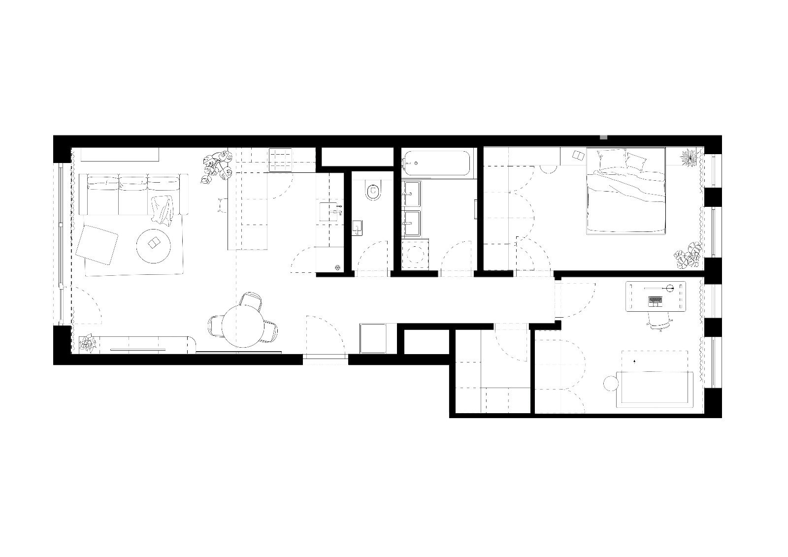 Byt sa prenajíma kompletne nadštandardne zariadený nábytkom vyrobeným na mieru. Nachádza sa na 3. poschodí (s výťahom), orientovaný na juh. Pozostáva zo vstupu, obývacej izby prepojenej s kuchyňou, 2 spální, šatníka, kúpeľne s vaňou a samostatného WC. V obývacej izbe je priestranná loggia s výhľadom na Dunaj.