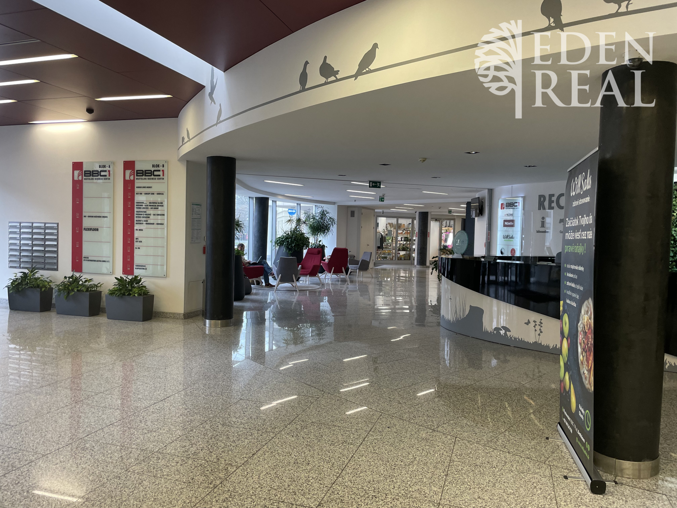 V okolí administratívnej budovy sú kompletné služby ako banky, lekárne, reštaurácie, notár, fitnescentrum, rozsiahly výber samoobslužných reštaurácií a kaviarní..